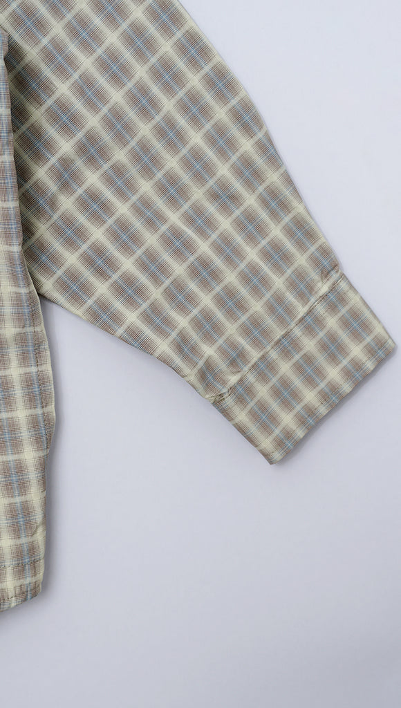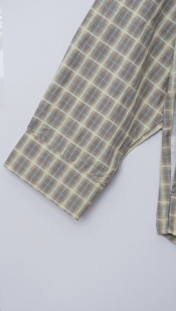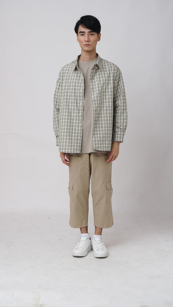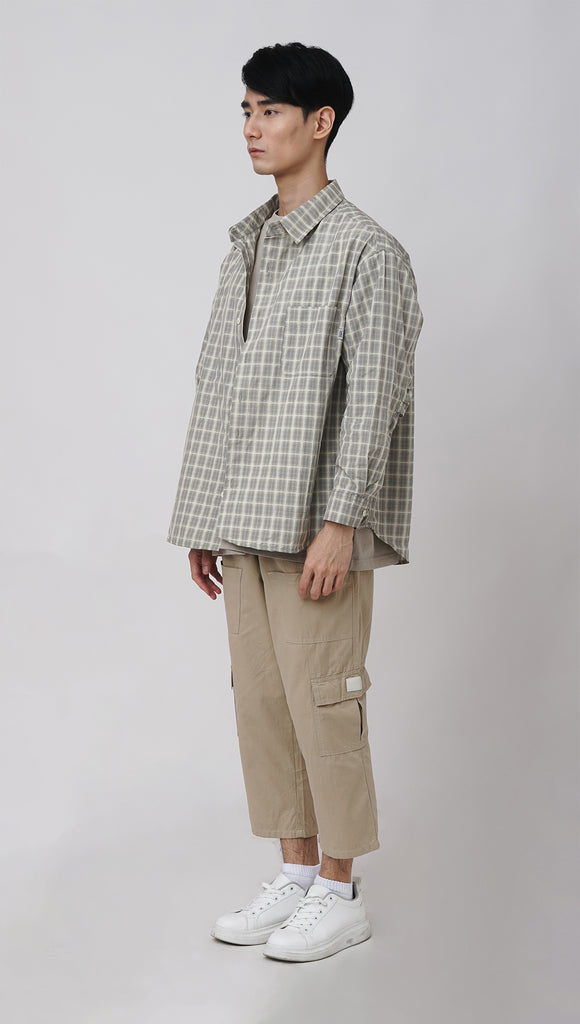 Textured and Structured Checkered Panel in Boxy fit with 2 Hidden Pocket on side because who knows when will you need a hidden pocket. If you like a bit of crop with boxy shape on side then we would recommend this product. It is sad that we don't have a physical shop to showcase this but we hope the photos can justify it.