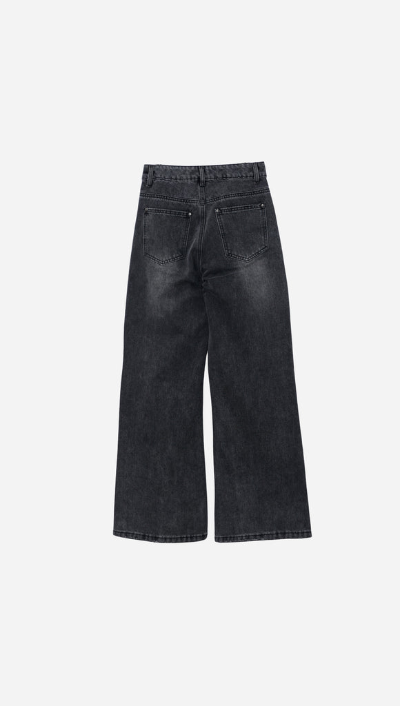 Stretchable, mid-weight denim flared pants with a tuck-in option for shirts. They are a popular choice for both genders in Korea, almost like daily work jeans.