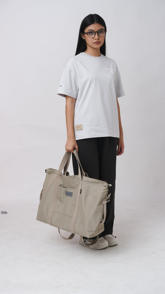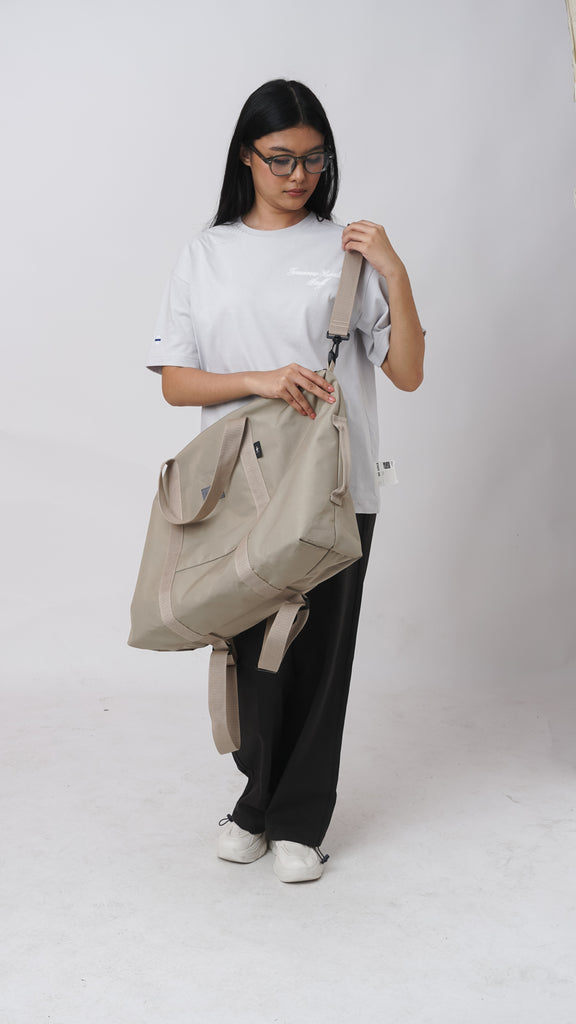 Mixing tradition of tote and function. comes the trooper tote. Glad how it has come about. it has an 8 way to use the tote (sling, backpack, carry on, pizza handling, side handling+). Pocket has 1 outer 2 inner and 2 inner zip pocket in different sizes